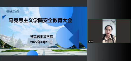 为切实做好学院疫情防控工作,提高同学们在校期间的安全防范意识,4月15日下午,马克思主义学院召开了线上疫情防控安全教育大会。院党委副书记邵平、马克思主义学院全体学生参加会议,会议由辅导员刘娟主持。