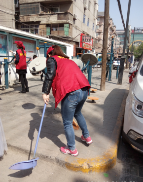 (图为党员们在打扫社区街道的卫生)